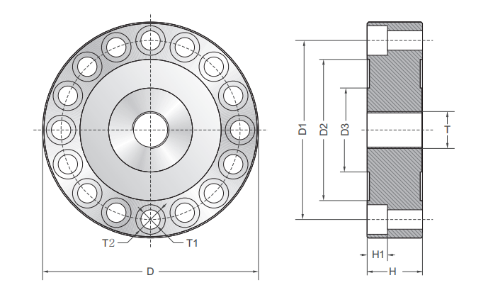 量程(kN) 量程(t) D D1 D2 D3 H H1 T T1 T2 500 50 mm Φ234 Φ194 Φ153 Φ91 60 22 M40x1.5 16xφ21 16xφ32 1200 120 mm Φ234 Φ194 Φ153 Φ91 70 22 M40x1.5 16xφ21 16xφ32 |
