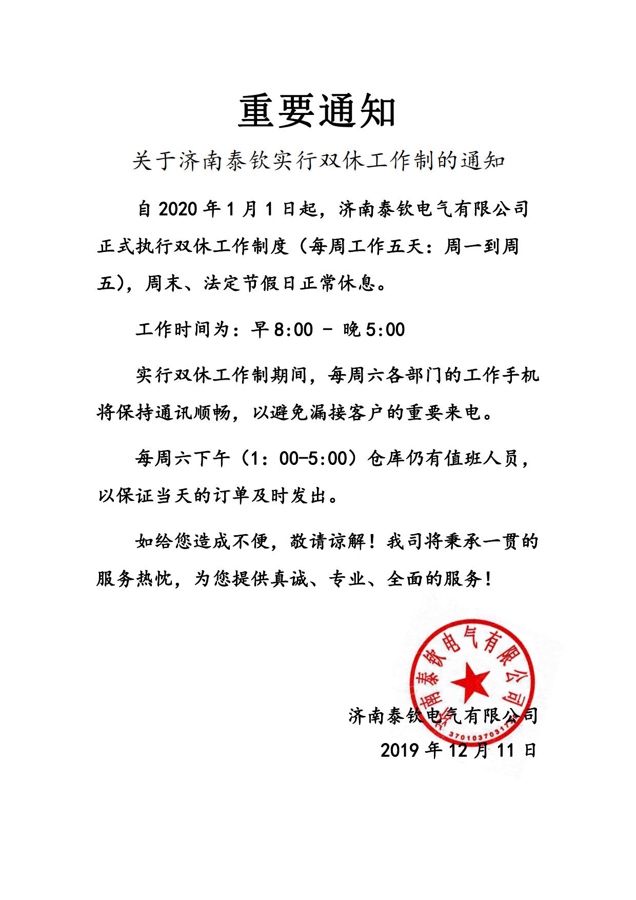 雙休工作制調整通知