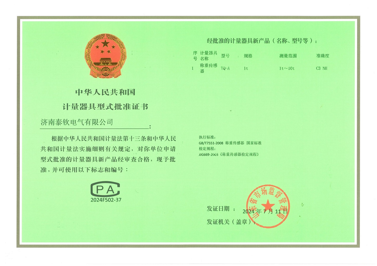 濟南泰欽電氣有限公司CPA型式批準證書終于下來了。 再接再厲繼續(xù)努力!