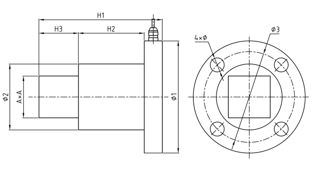 型號 | 量程(Nm) | A | H1 | H2 | H3 | Φ1 | Φ2 | Φ3 | Φ |