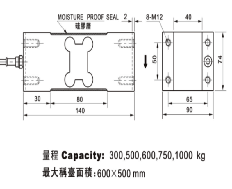 產品用途:TQ-L9平行梁稱重傳感器適用于計價秤,計數秤及臺秤等力量測量設備。